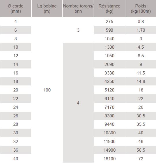 Corde à usage divers et variés, utilisée pour la fabrication des élingues, des filets à grimper ou autres équipements dans les parcs en hauteur…