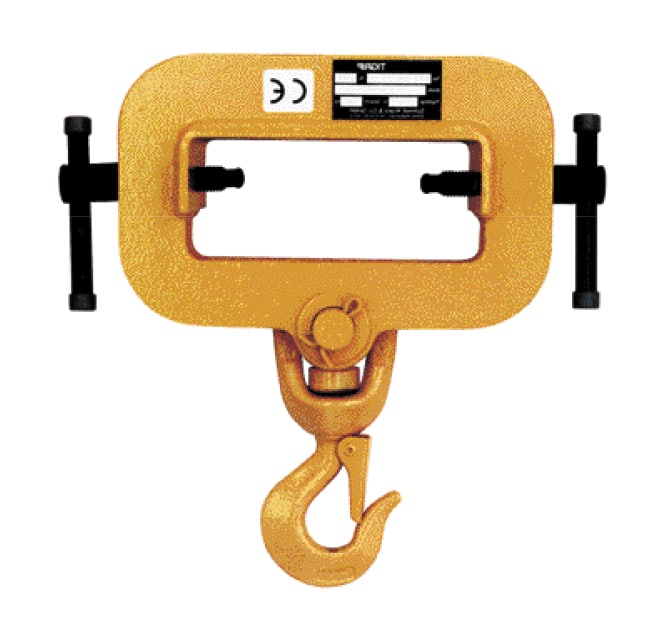 Crochet spécialement étudié pour fixer un appareil de levage sur l’une des fourches du chariot élévateur.
